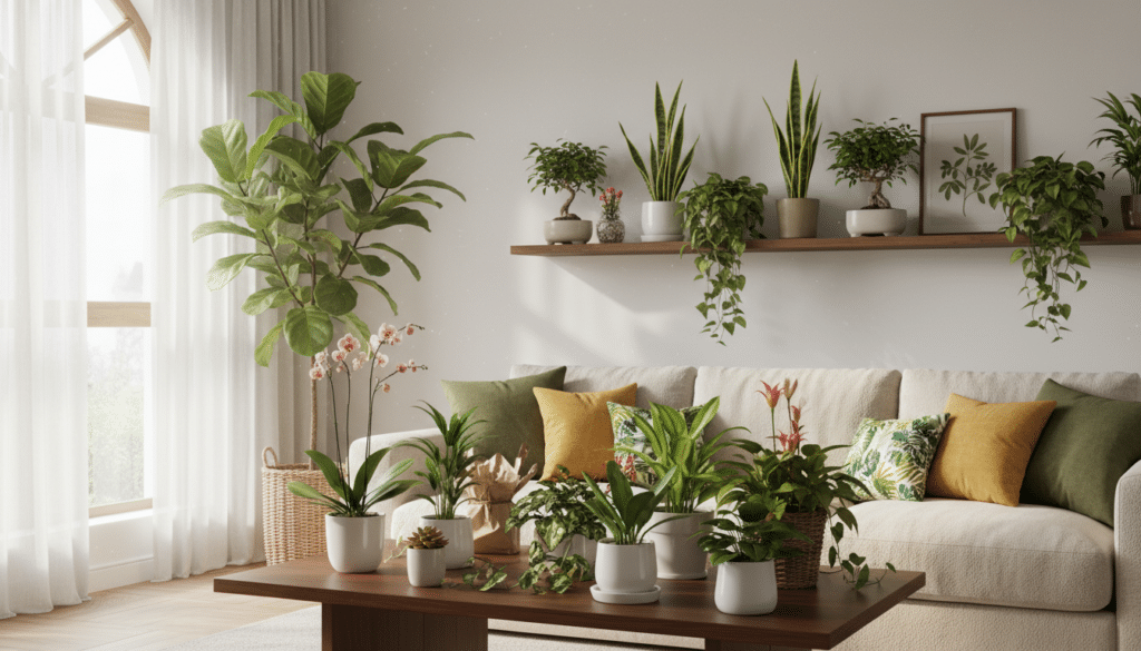 - Kletter- und Hängepflanzen: Verleihen Räumen Tiefe und Struktur. Rankende Philodendren oder Pendel-Efeututen sind hier beliebte Optionen.